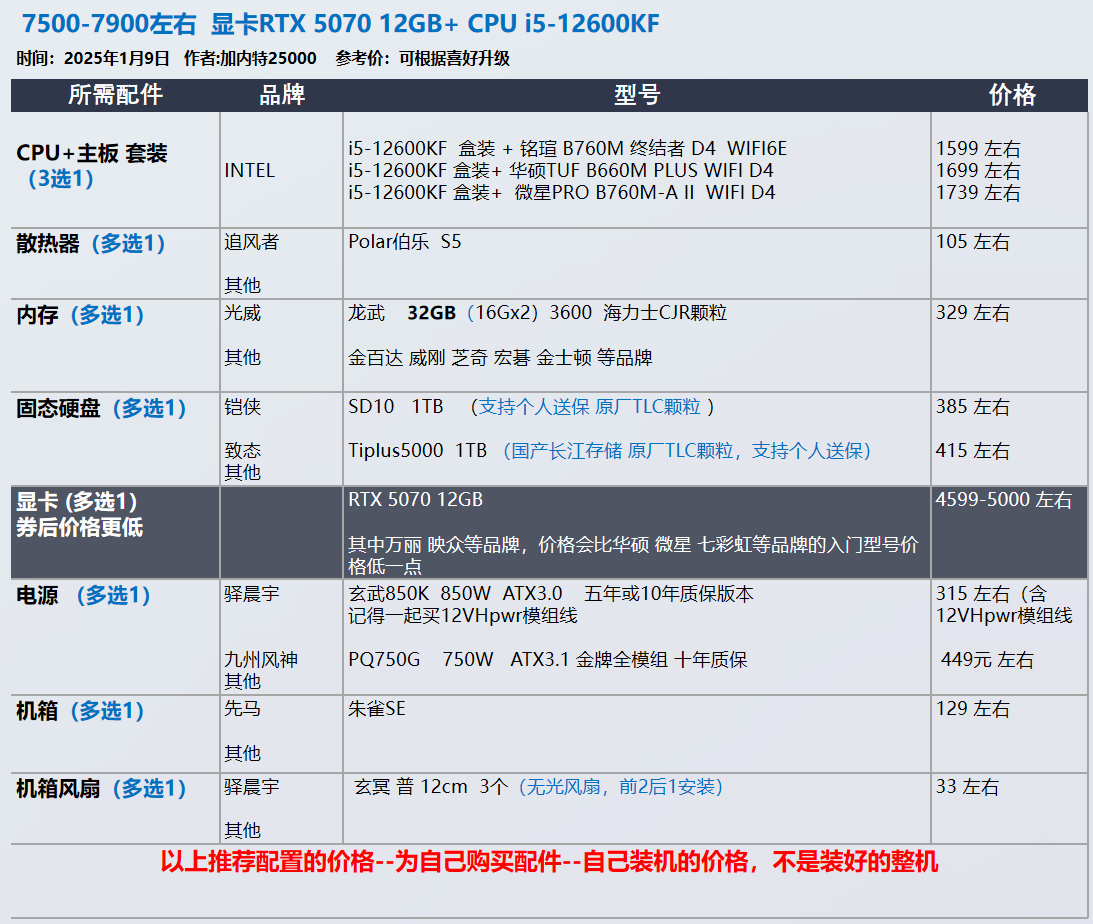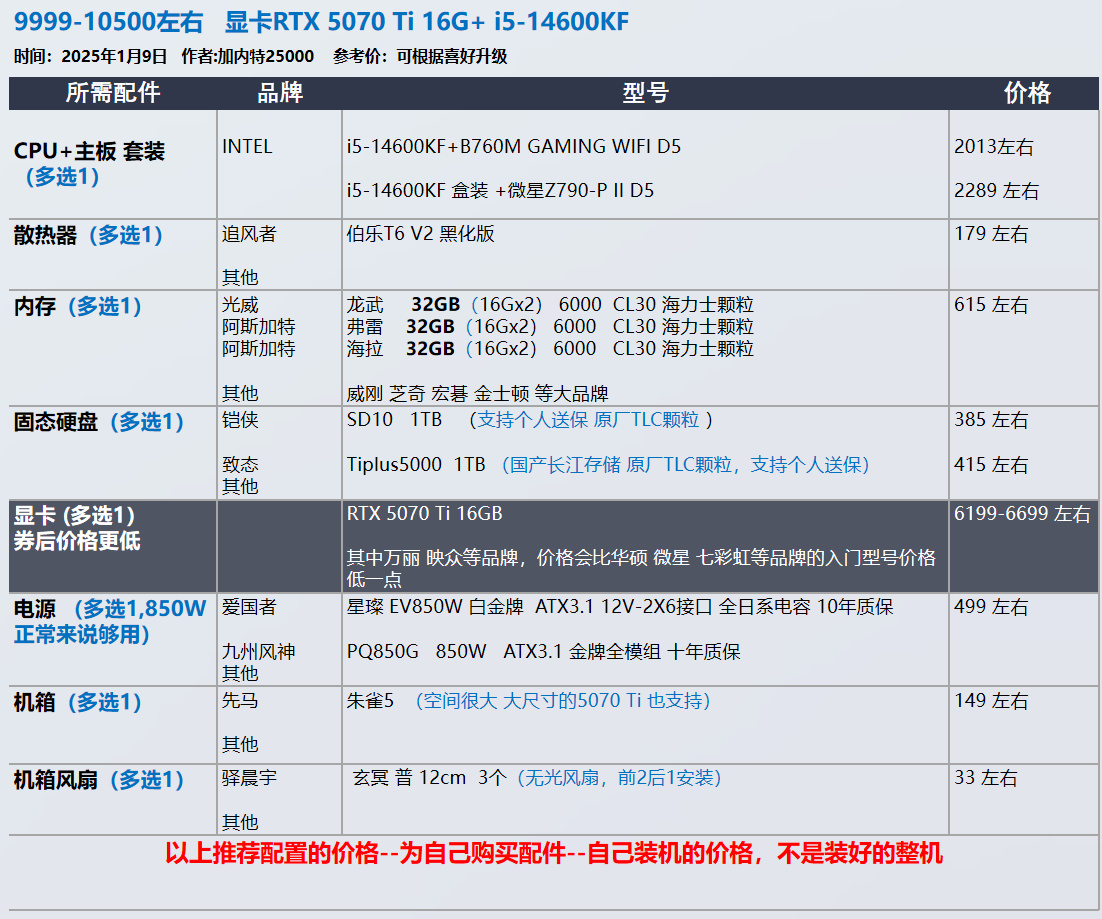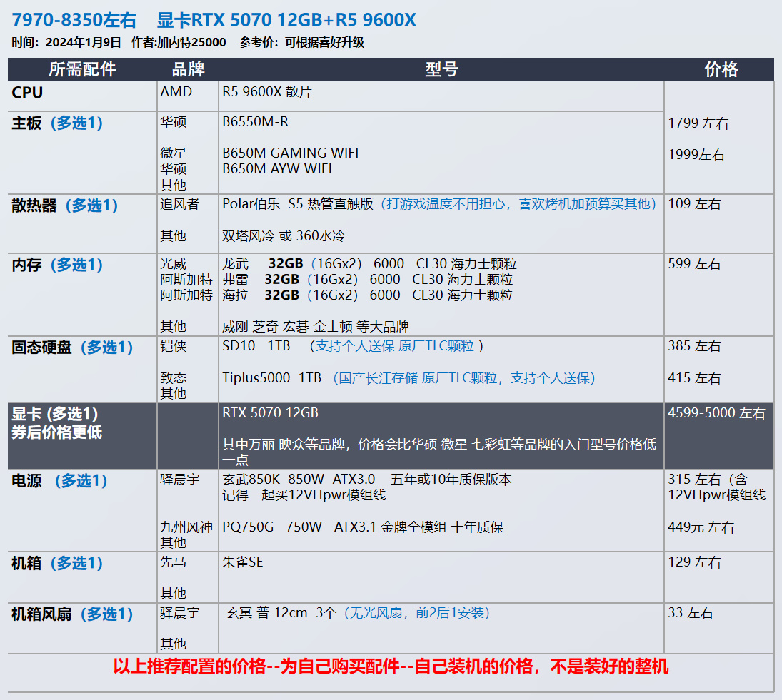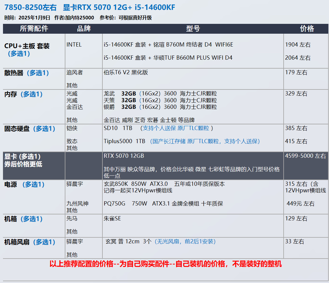 其中AMD 9600X 9700X更穩定,14600KF適合不喜歡AMD的朋友考慮(建議買有5年質保的盒裝)
