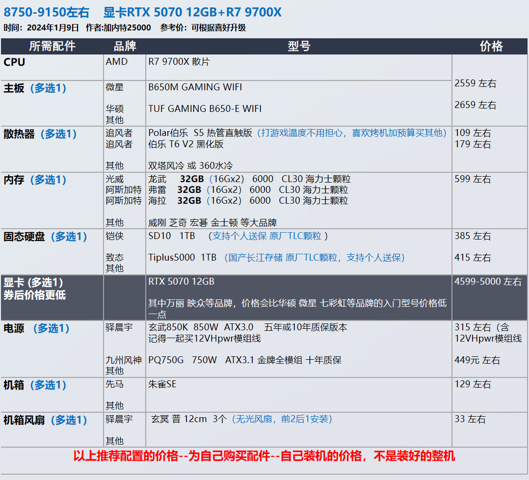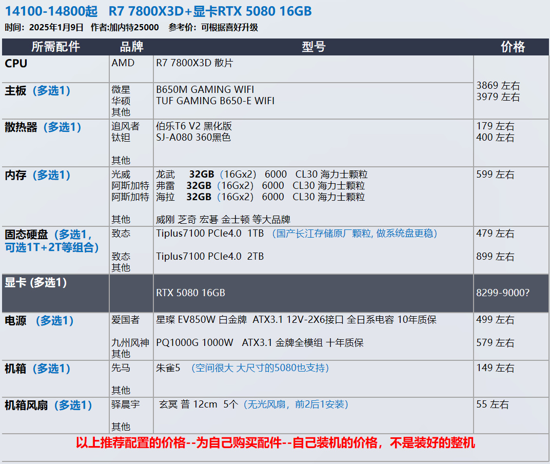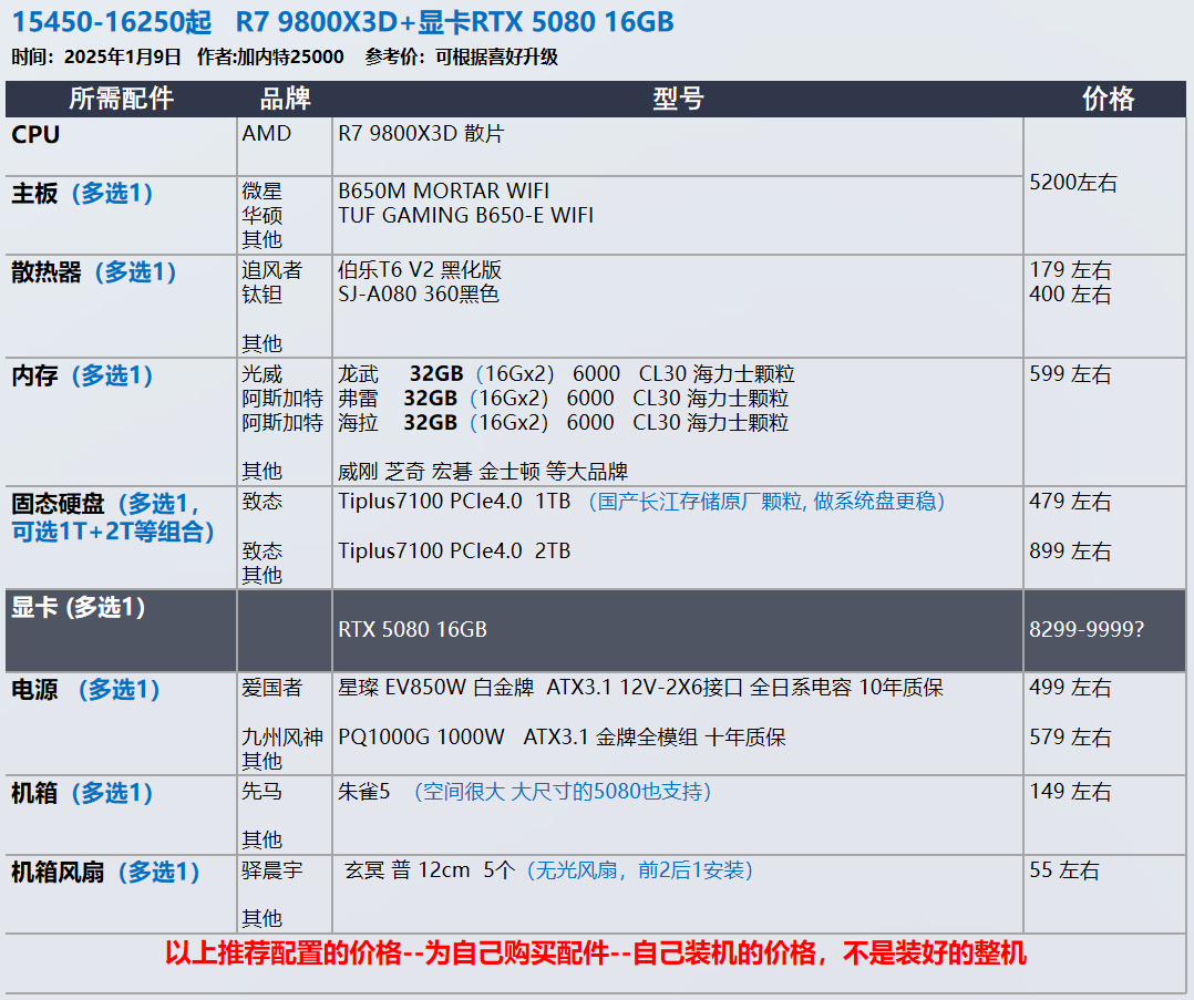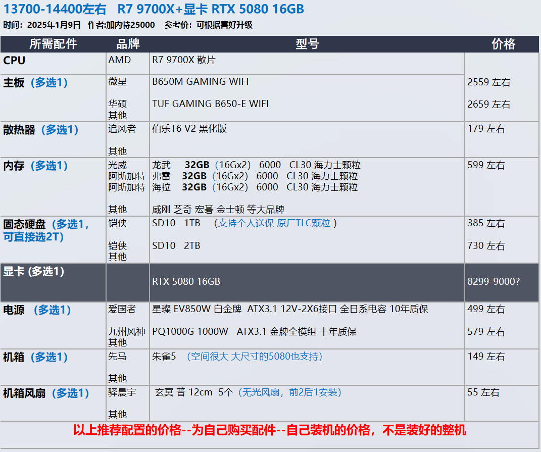 第一套CPU 9700X+RTX 5080這套配置組合,大部分朋友就夠用了