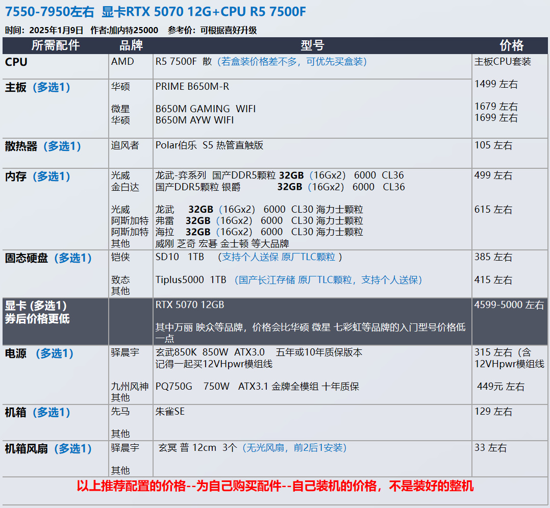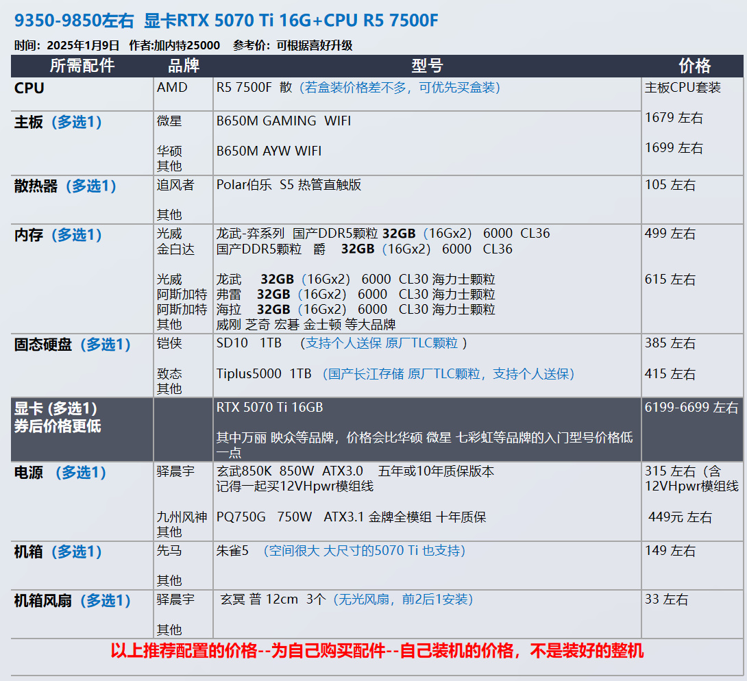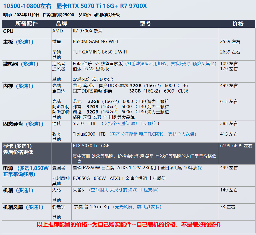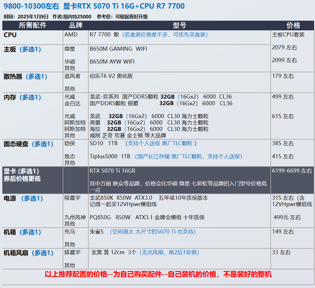 第一套CPU 9700X+RTX 5080這套配置組合,大部分朋友就夠用了