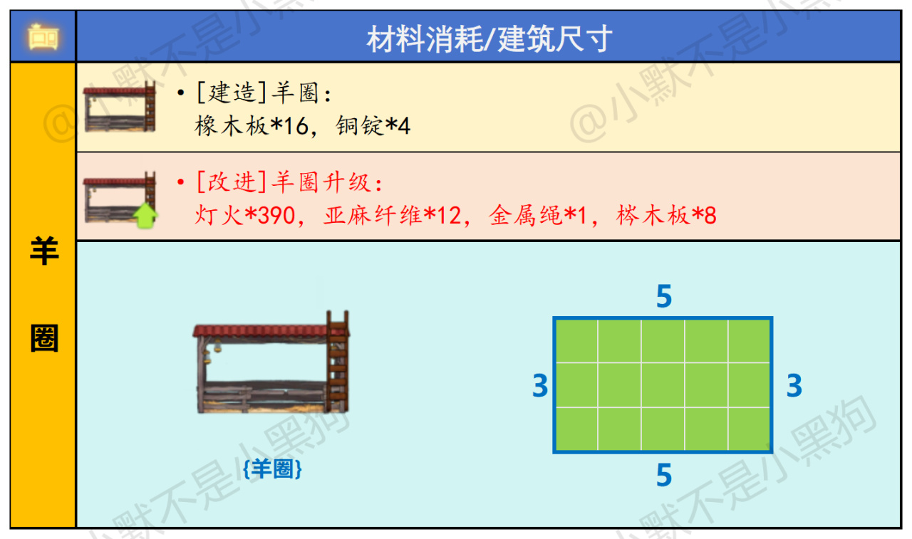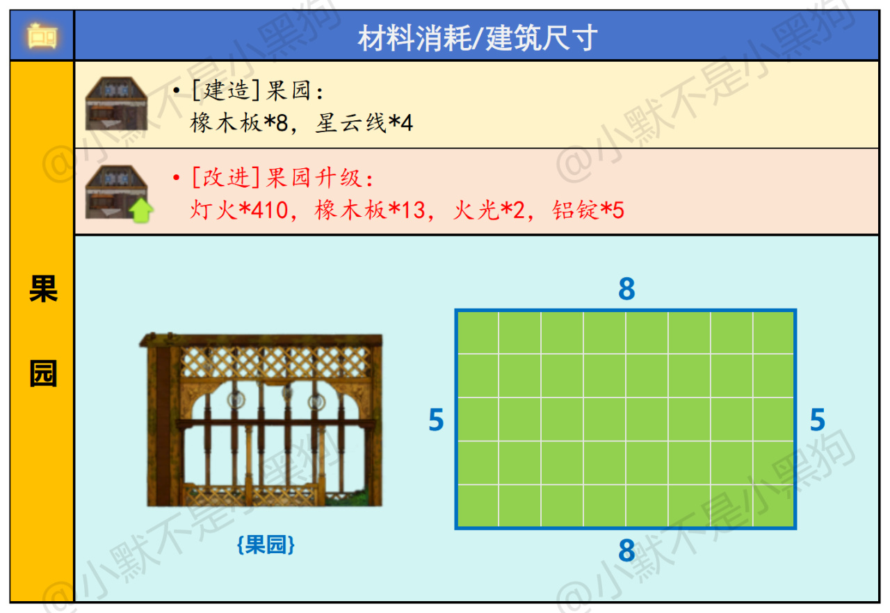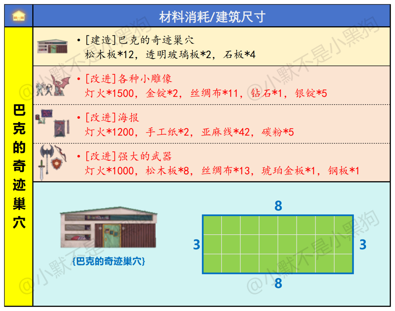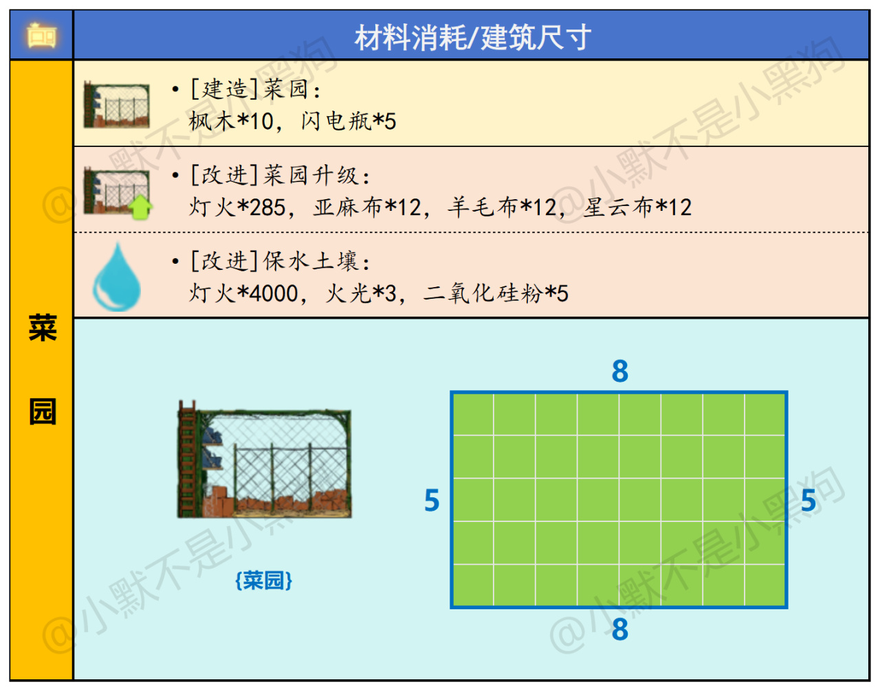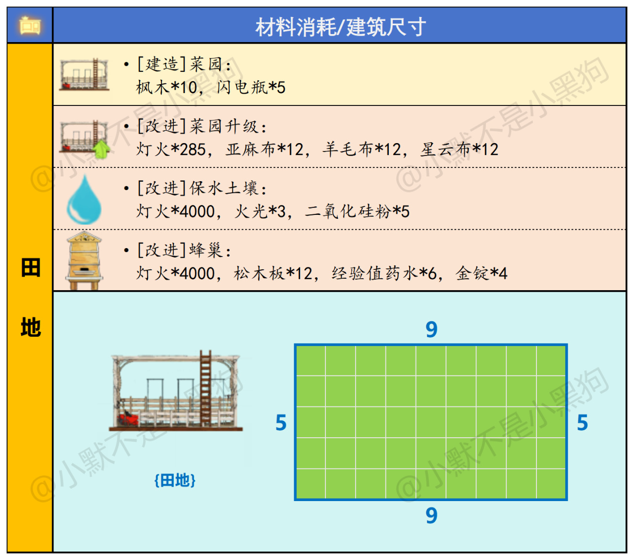 本篇主要內容是對遊戲中33個建築的材料消耗和建築尺寸進行了統計和整理。