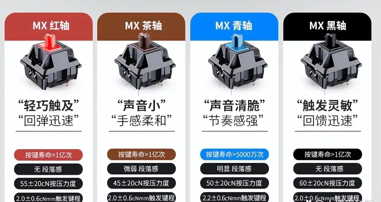 1. 手感反饋明顯:青軸具有明顯的段落感和聲音反饋,給用戶帶來清晰的手感體驗。
