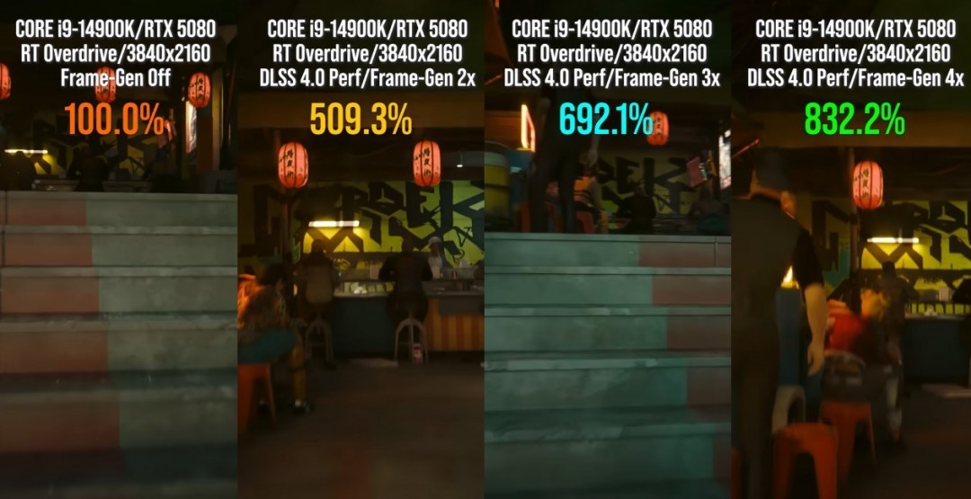 根据外媒Digital Foundry(DF)的早期测试,RTX 5080在使用新的3倍和4倍DLSS 4帧生成时获得了显着的性能提升。根据DF,使用DLSS 4性能和4倍帧生成的RTX 5080平均比使用DLSS 4性能和2倍帧生成的4080 Super快91%。