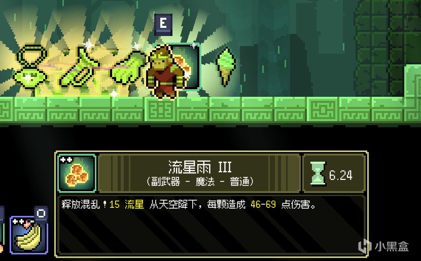 另外就是副武器流星雨,这个武器只能在关卡中随机遇到,有可能是npc,也有可能是开箱子,遇到后只要换武器使用一次就解锁了,后期可以在初始武器和关卡中遇到了