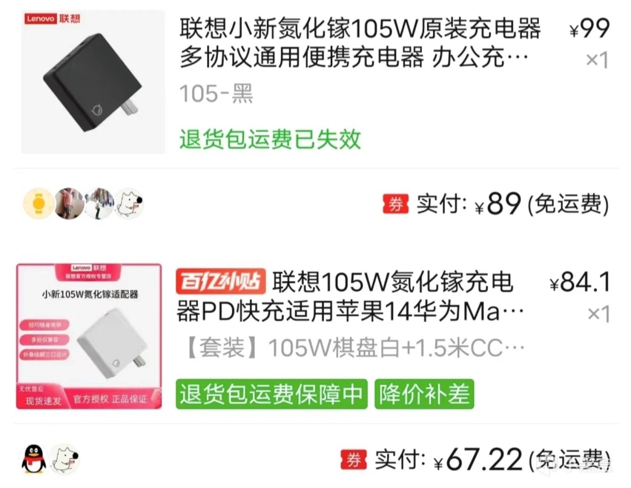 聯想105W三口氮化鎵適配器(好價60——80元)