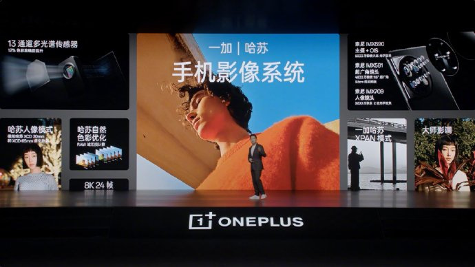 影像方面,一加 11 搭载哈苏自然色彩优化和 13 通道多光谱传感器,配备 5000W 像素 IMX890(支持 OIS)、3200W 像素 IMX709(支持两倍超感光人像,进光量提升 416%)、4800W 像素 IMX581(支持超广角微距),支持 RAW 域无损计算。
