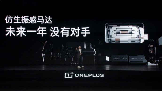 值得一提的是,一加联合瑞声全球首发仿生振感马达,这是一款体积超过 600mm³ 的马达,是目前安卓最大的 X 轴线性马达,同时首发全相磁路技术,可实现两种振感同时发生,例如游戏中边驾车边攻击。