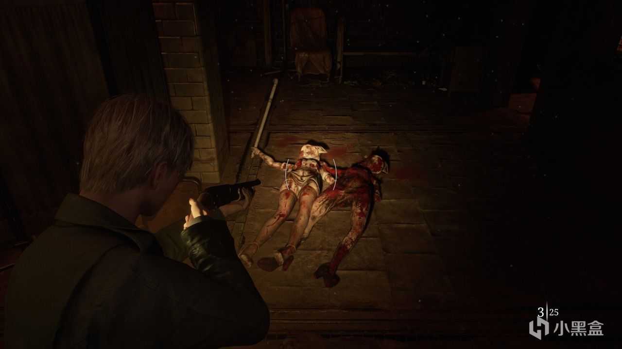 当然,或许一些“现代游戏工业”的经验起到了很大的作用(并不清楚原版有无类似的引导),最开始进入游戏时,地上的血痕就成为了我们直接的引导,后续的流程中,可以砸开的墙壁、可以翻越的窗台都有白布标识。