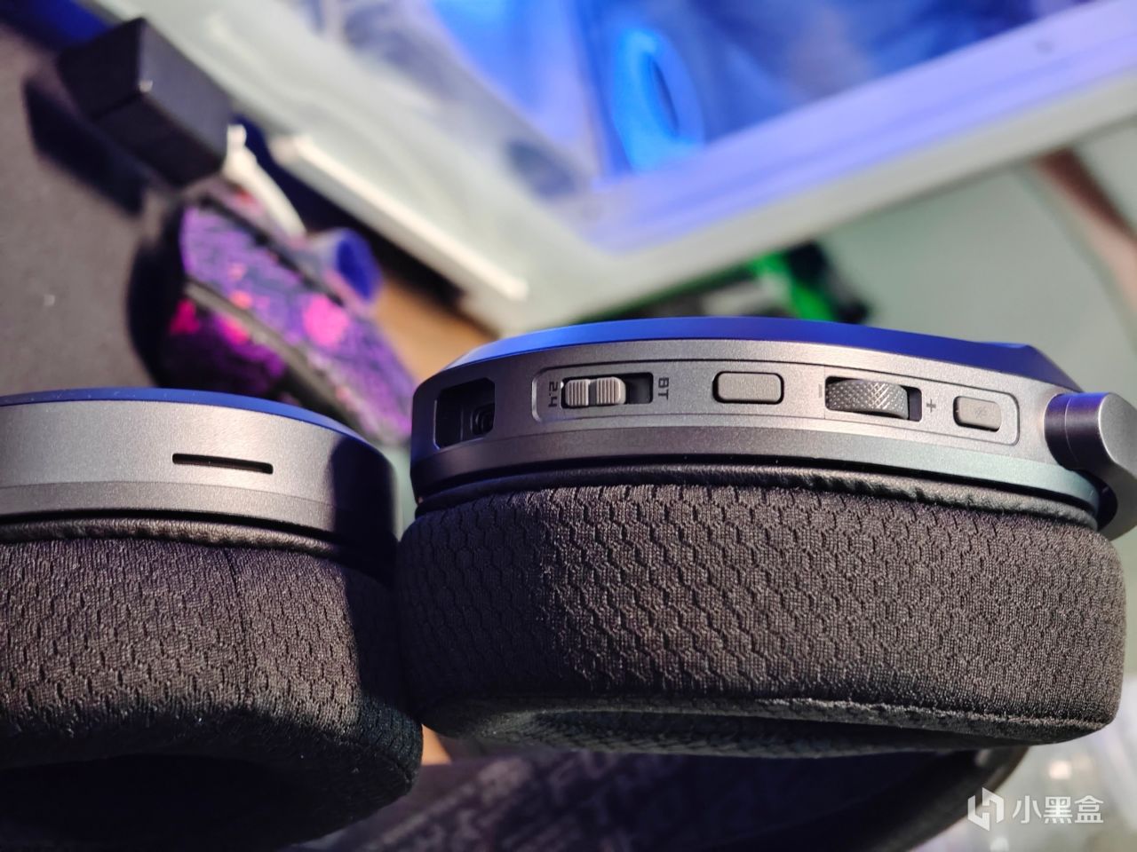 左耳後面是常規按鍵,音量滾輪和麥克風靜音鍵位置陰間,正反手都高了。操作略費勁兒。