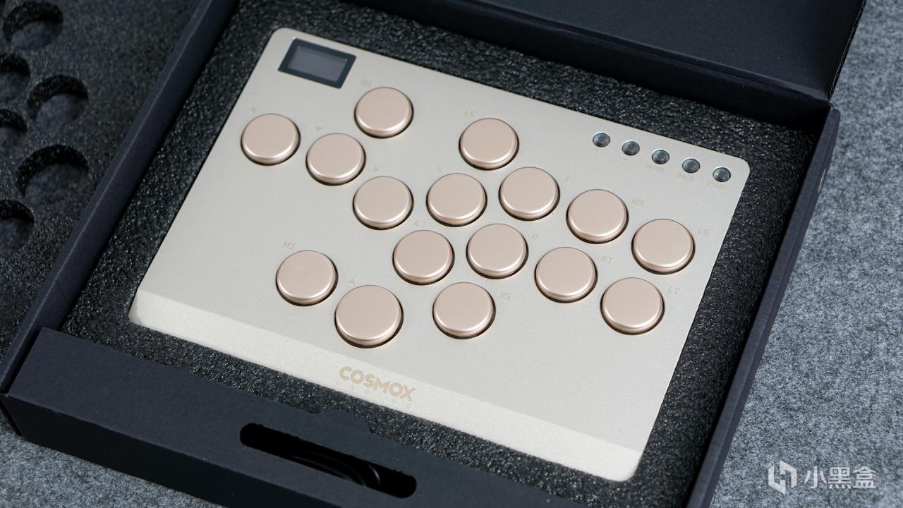 打開箱子,我們就可以看到這款Hitbox的本體了。它目前有兩款配色,分別是沙漠金和黑灰色。我手上的這款是沙漠金。