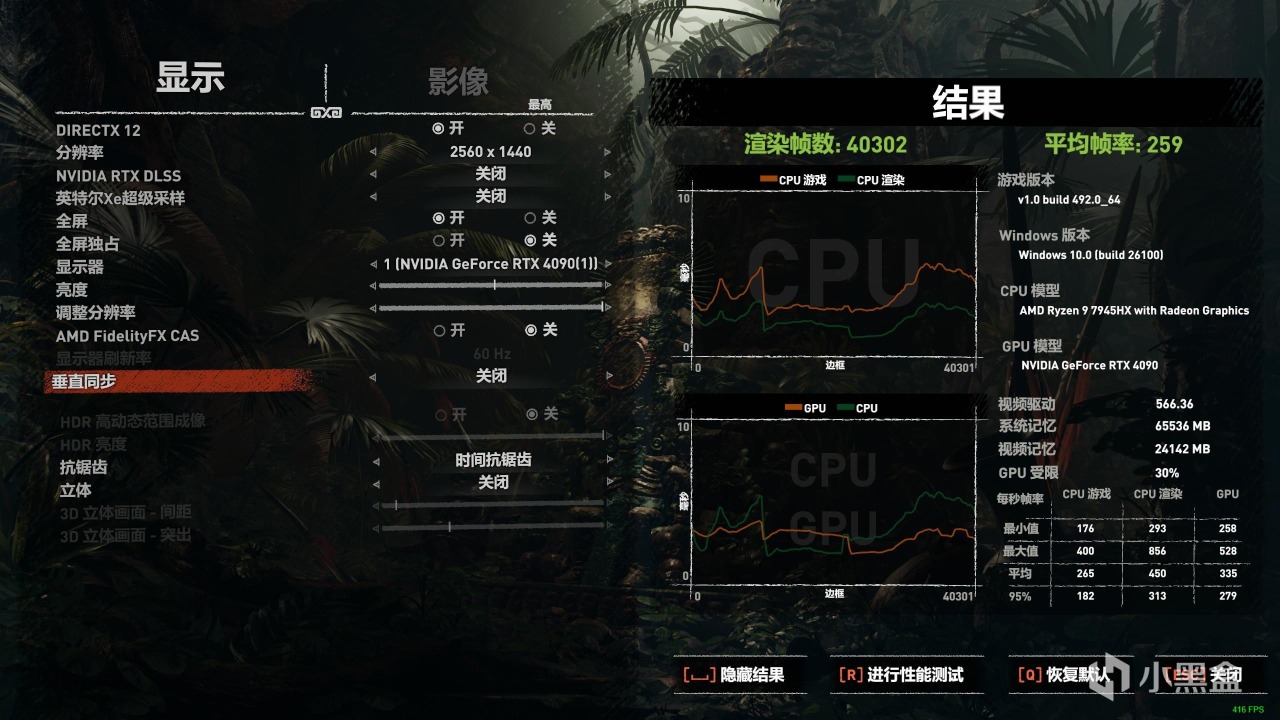 那麼遊戲性能如何呢?搭配4090FE,在1080P和2K分辨率下跑了幾個3A遊戲,內存是默認的DDR5 5200,表現如下: