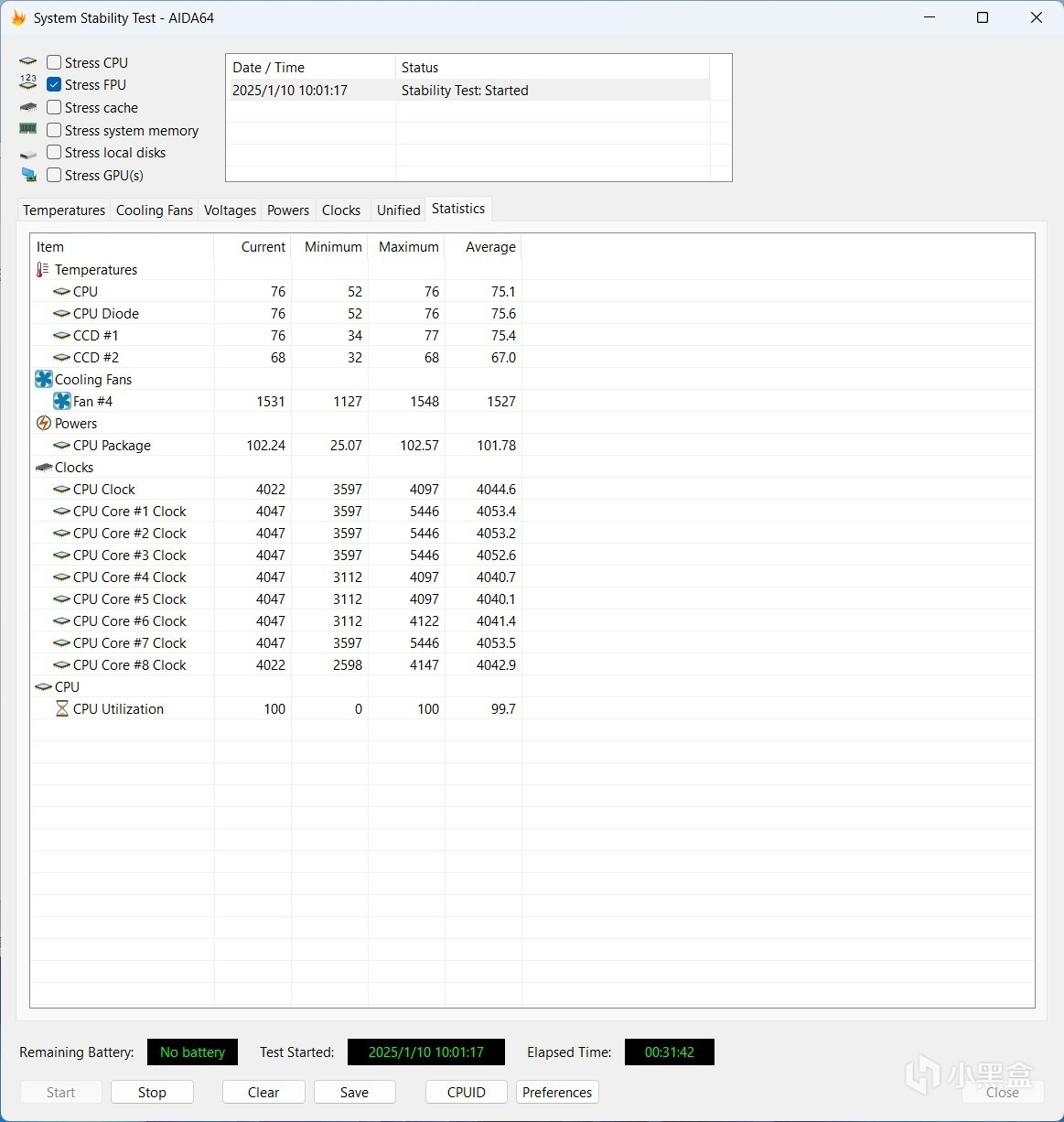 溫度呢?並不高!滿載只有100W,在搭配單塔的利民AX120R時候,這個109元的單塔輕鬆把16核的7945HX壓到70度左右: