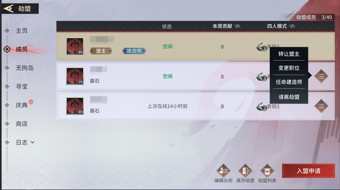 如果劫盟想要建造更龐大的門面,就要對聯盟玩家的活躍度有要求,佛系玩家就不要湊熱鬧了。