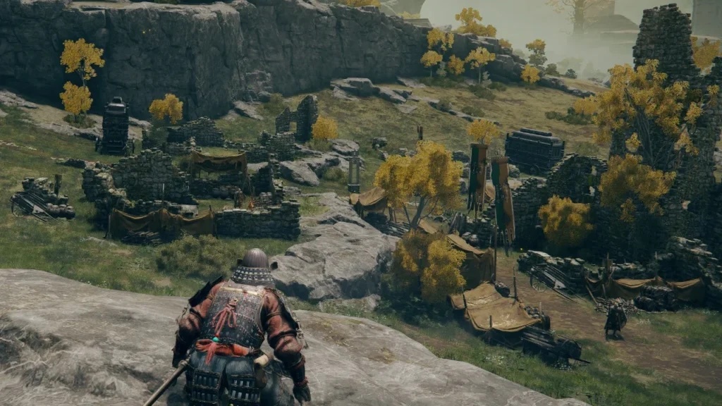 登上山頂,你應該能看到士兵的營地。在出發之前,建議在營地周圍向左切,在大石門附近的恩典遺址休息。Melina在這裏介紹自己,她還贈送了幽靈牛哨子,讓你召喚Torrent更快地穿越。