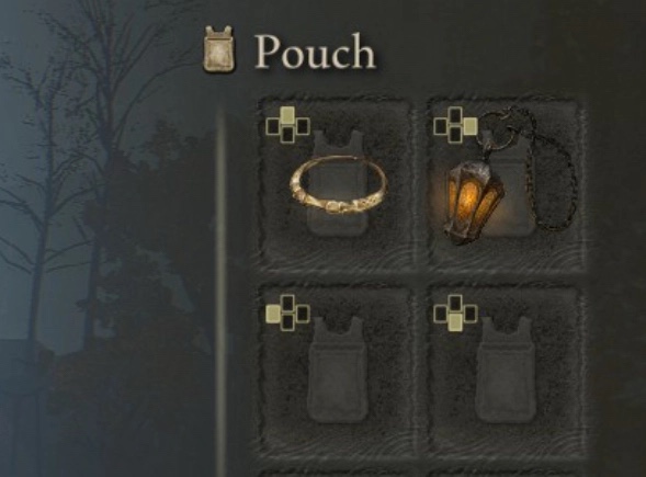 您現在應該將Spectral Steed Whistle和Lone Wolf Ashes裝備到您的Pouch插槽中。您可以將項目裝備到暫停菜單右上角的Pouch插槽中,並通過按住Y將左下角的齒輪菜單更改爲Pouch菜單,然後按D-pad上要使用的項目的方向來使用其中的項目。你經常使用但在戰鬥中不經常需要的物品最好放在這裏。