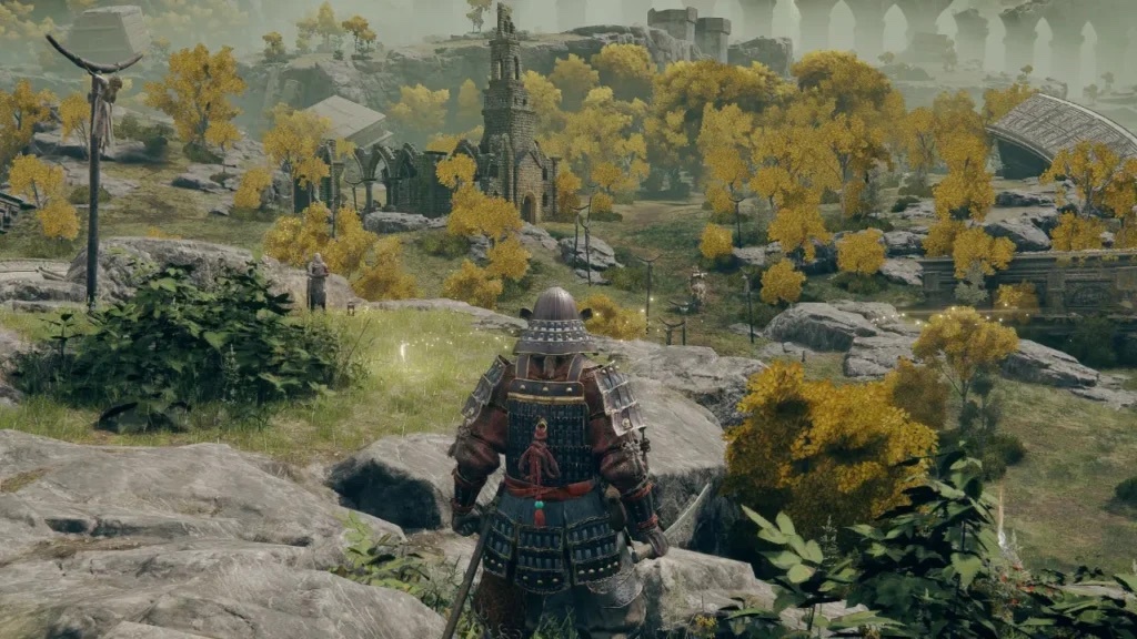 說到我們從這座山上看到的,有一個騎着馬的大金騎士在一座破舊的教堂前小跑來走去。雖然建議避開這個騎士,但他再次被打敗,如果你打敗他,他會用他的特殊武器獎勵你。如果你願意,可以隨意把你無休止的重生屍體扔給他,但同樣,這可能是你以後的問題。