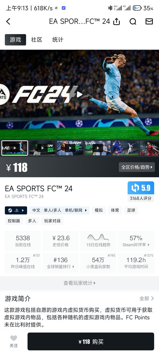 喜歡足球的盒油可以一試了,雖然是年貨遊戲年年被噴,年年出,但是也抵不住就這一種,現在價格降到這樣就能拿下還是很合適的。除非25永降不然很難背刺這個價格了,即使永降也是大幾個月之後了,早玩回本了