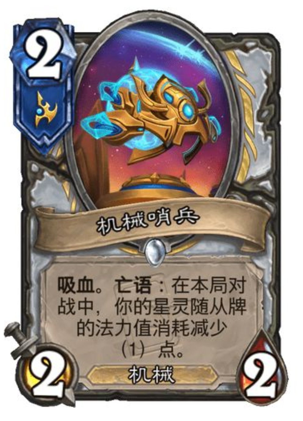 吸血。亡语:在本局对战中,你的星灵随从牌的法力值消耗减少(1)点。