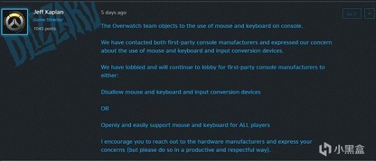 《守望先鋒》遊戲總監 Jeff Kaplan 曾表示開發團隊不希望玩家在主機上使用鍵盤和鼠標,因爲鍵鼠操作在精度和速度上優於手柄,會給使用轉換器的玩家帶來不公平的優勢。