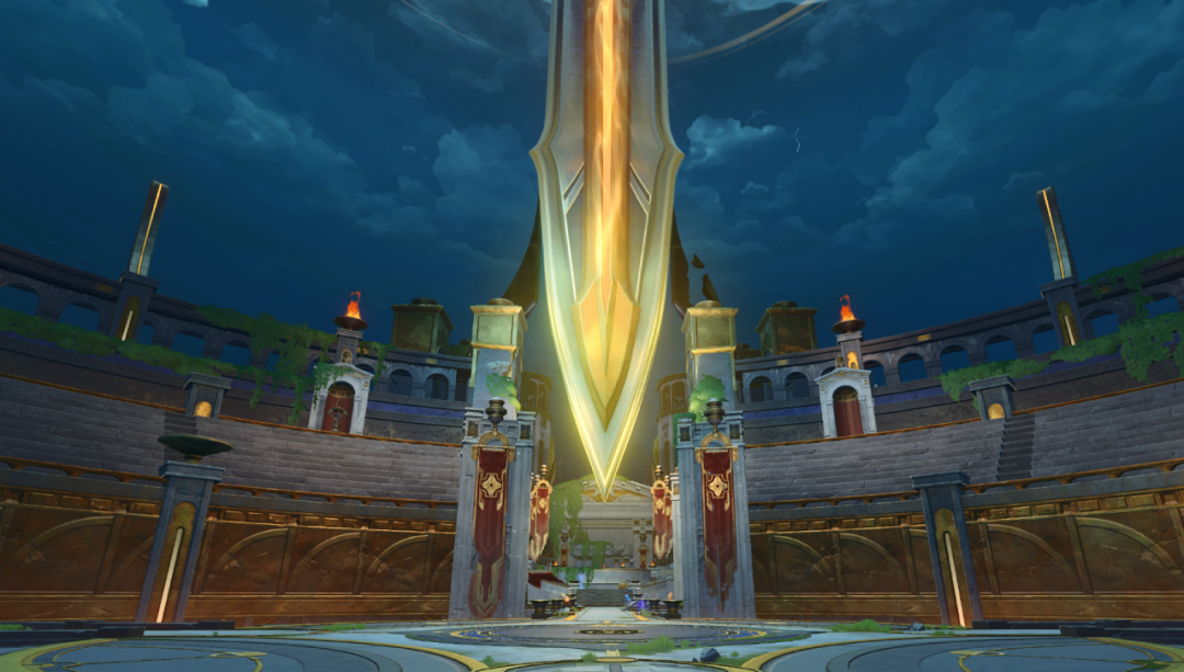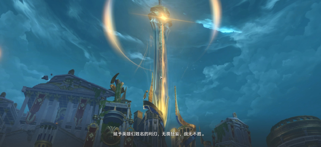 旅途中玩家還會來到懸鋒城,那裏有着古老的競技場,巨大的寶劍懸掛於天空,那是「紛爭之泰坦」的天譴鋒刃,是懸鋒城子民驕傲的象徵。