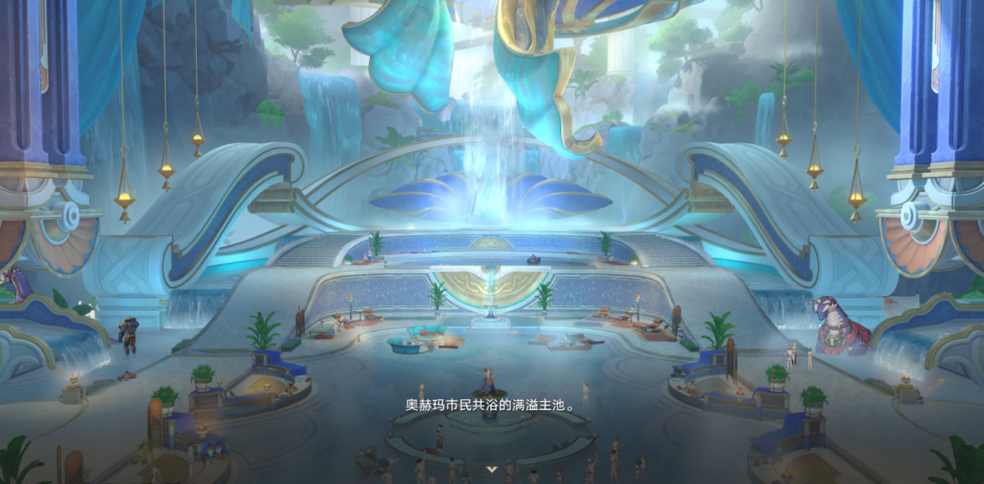 爲了儘可能貼合選定的文化風格,場景在人文風俗方面也做了功課。比如主城奧赫瑪便參考了與羅馬有一定淵源的威尼斯城鎮建築,並在城市中加入了豐富的公共浴場。