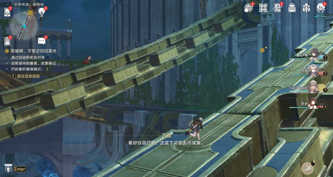 初次來到這顆星球,玩家就能看到佇立在「命運重淵」上的雅努斯巨門,通往它的橋樑早已斷裂,宏偉又空曠的景色訴說着翁法羅斯永夜下末世的破敗。