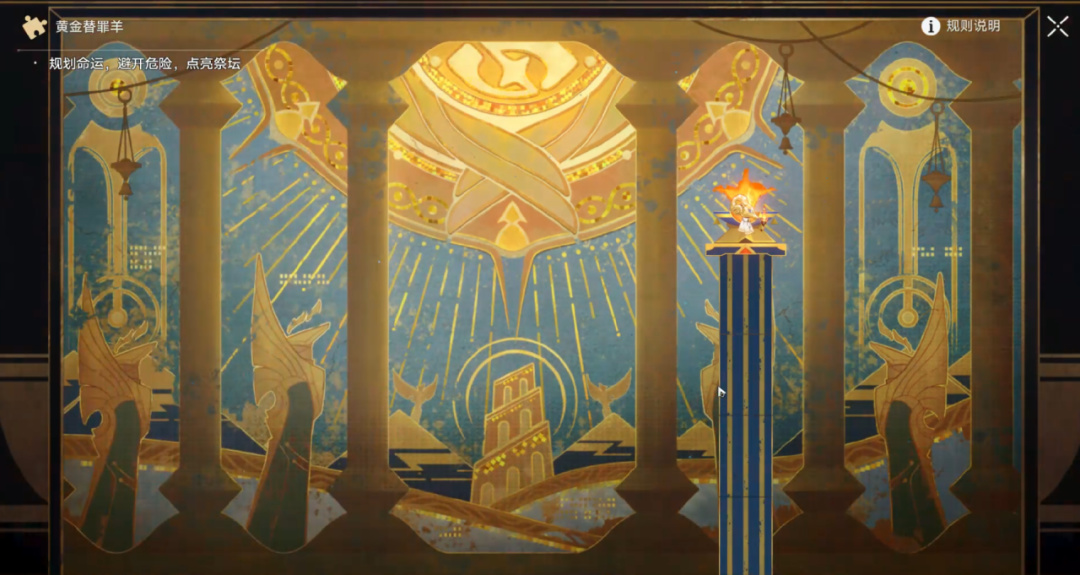 要說最值得一提的小遊戲,還得是黃金替罪羊。這是一套關卡解謎玩法,它在玩法定義上對標了匹諾康尼版本的夢境迷鍾。