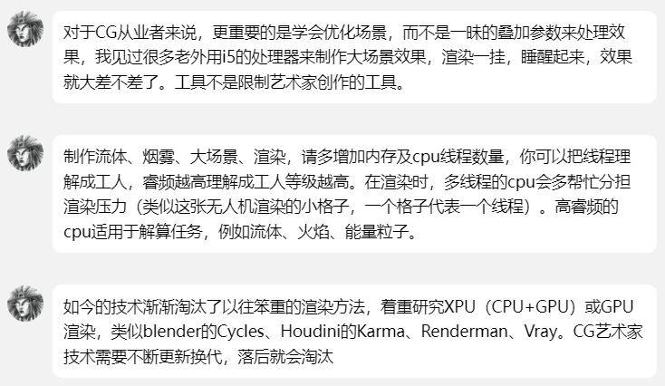 也就是说:哪怕都是渲染需求,不同渲染器、渲染技术对CPU或显卡要求也是不同的