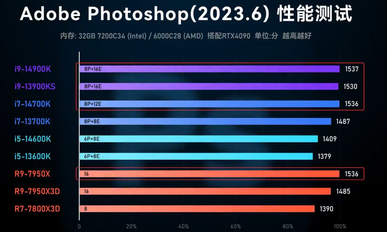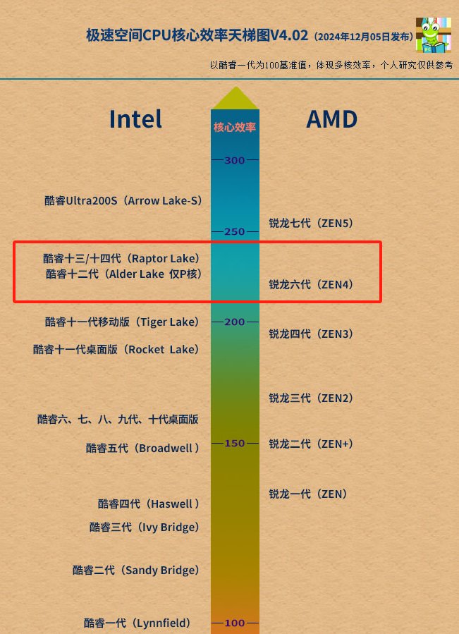 英特尔12-14代,核心效率基本没啥变化,和老对手AMD的7000系列处理器差不多