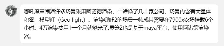 而老哥做的哪吒魔童闹海,很多场景用的是一个叫阿诺德渲染的技术: