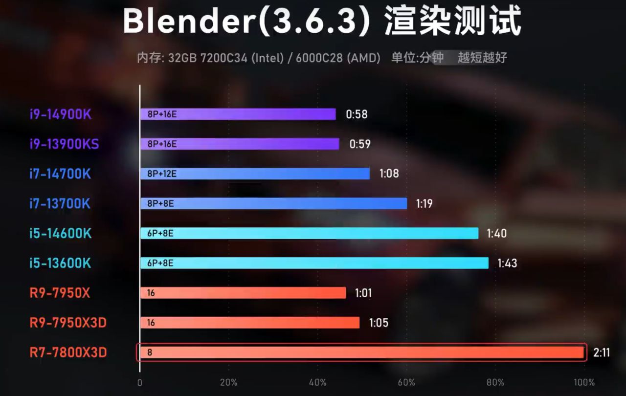 像7800X3D,游戏神U毋庸置疑,但搞生产力测试,效率不如便宜很多的14600KF这种多核性能强的CPU
