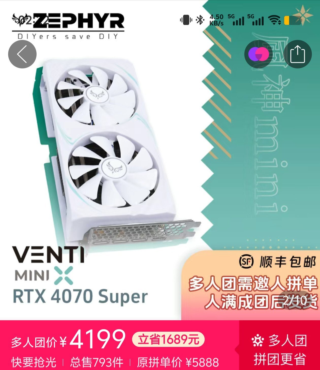 - 显卡方面我此次用的是7900GRE,目前的价格是4100,其实这几天是有涨价的我记得前不久好像是3900吧,过年那段时间可能会降一点。性能方面差不多是4070S下面一点,如果你有一定的办公需求,也是可以加三四百块钱上4070s的。当然如果你不在意品牌问题的话也可以去试一下西风,他家的4070s,目前pdd只要4199,就加了99块钱。