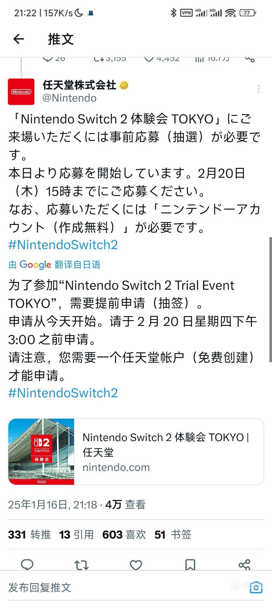 目前可以报名参加NS2的体验活动(在日本)