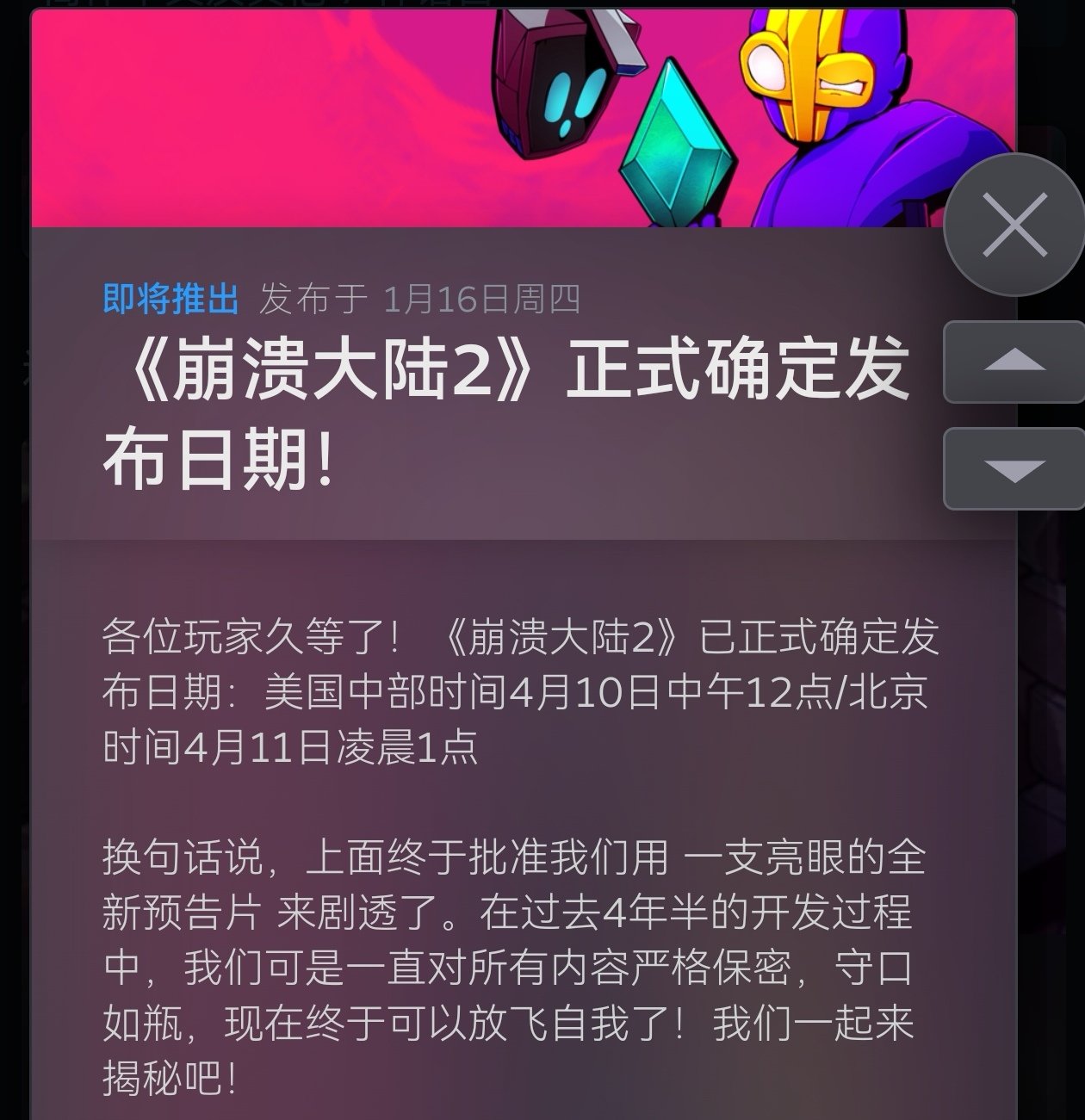 大家好,就在今天晚上,《崩溃大陆》的官方正式官宣了其旗下游戏《崩溃大陆》续作《崩溃大陆2》的发售时间,为2025年4月11日。