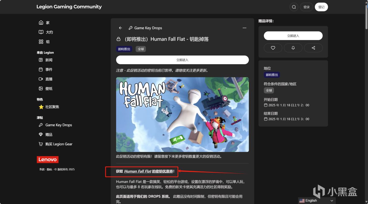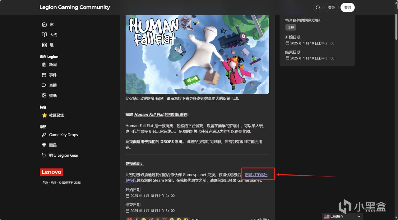 1.进入领取地址:https://gaming.lenovo.com/human-fall-flat进行账户注册(网页打不开可以开加速器)