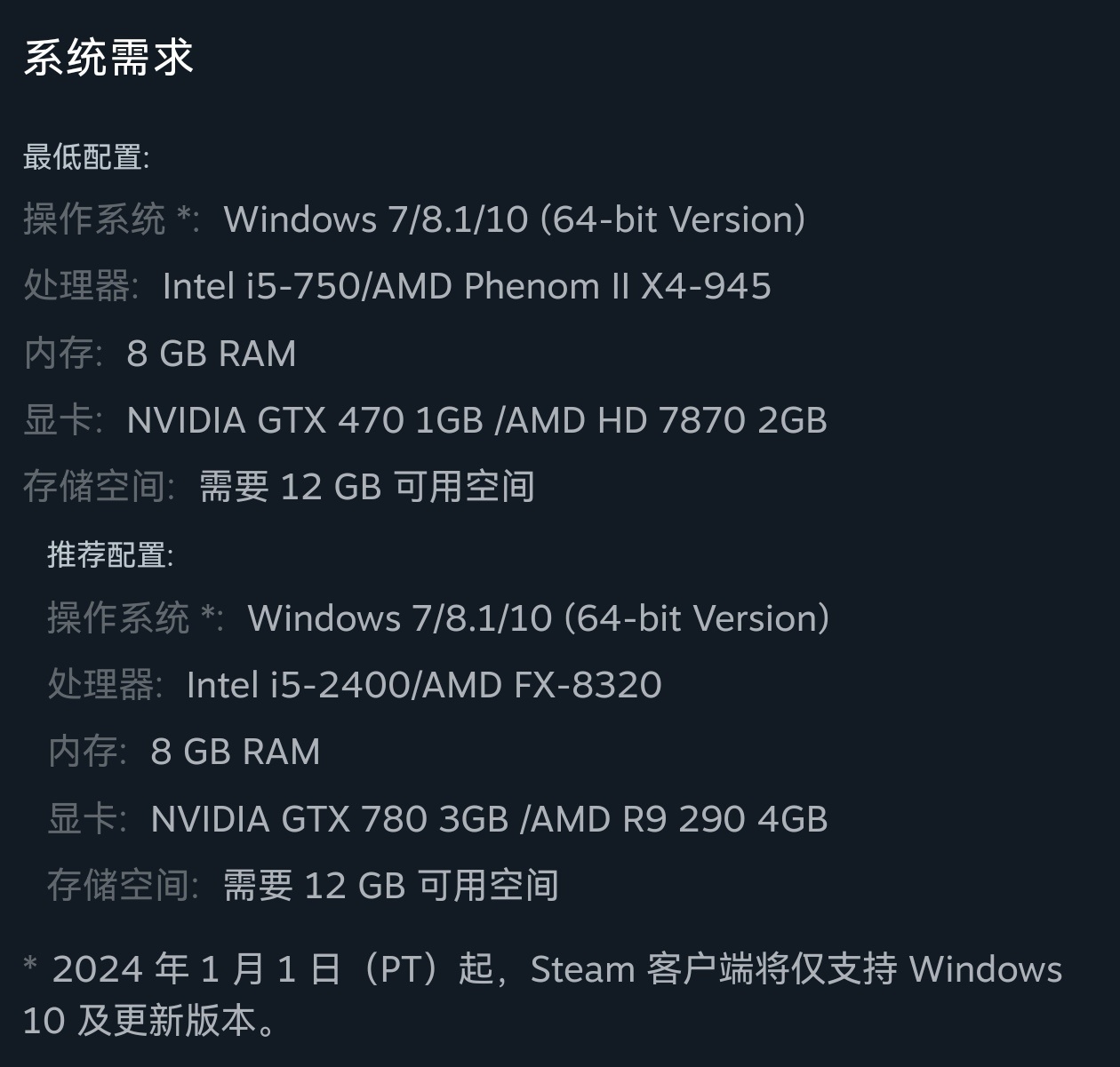 游戏配置要求: