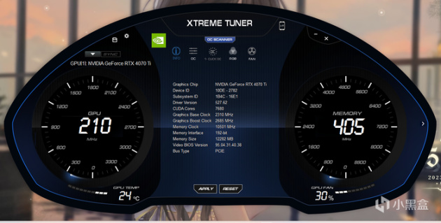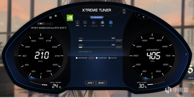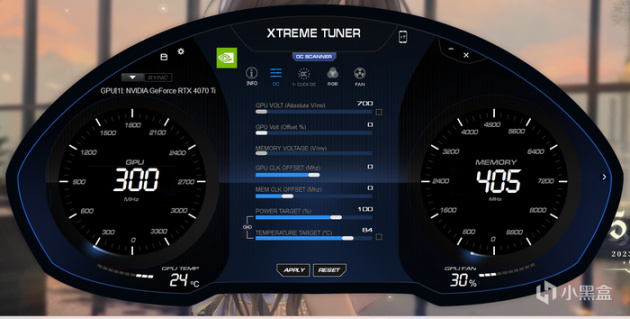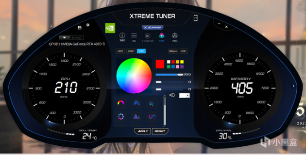 和显卡配套的影驰 XTRME TUNER 魔盘软件全面支持自家 40 系显卡,可方便进行超频、灯控调整、温度监控等便捷操作;