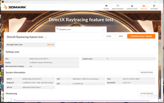 影驰 GeForce RTX 4070Ti 12GB 星曜 OC光线追踪测试 66.41 FPS。第三代 RTX Cores(光追性能最高提升至 2 倍)Ada 架构能够充分释放光线追踪的强大优势,可模拟真实世界中的光线特性。借助 GeForce RTX 40 系列和第三代 RT Core 的强劲性能,让玩家在虚拟世界中体验更多游戏细节。