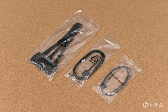 两根 5V3Pin ARGB 同步线、一根用于显卡直连主板进行灯效同步,另一根则为一分二转接线,当使用显卡支架时让显卡和支架均可同步主板灯效;一根12VHPWR 转 3*8Pin 延长线,让玩家手中没有附带 16Pin 线材的电源继续发光发热。