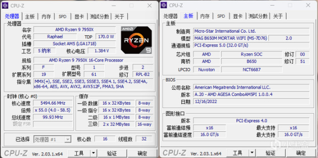 AMD Ryzen 9 7950X CPU-Z信息,主板已经更新到最新的 BIOS。