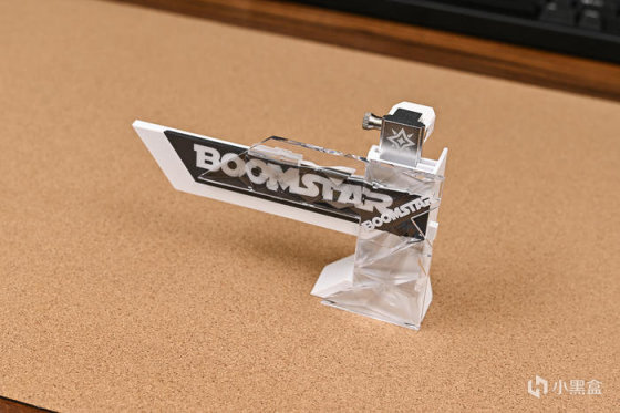 右侧则是 BOOMSTAR Logo,下方做了几何镂空开窗,贯穿通风,减少尾部中央防止下垂,同时兼顾更加散热风道。