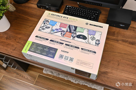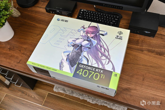 影驰 Galaxy GeForce RTX 4070Ti 12GB 星曜 OC 外包装非常巨大,中央是二次元形象全新盖板的星曜娘,机甲风格极具未来感,左上角印有影驰的Logo,右上角印有质保标识,影驰显卡全系支持三年质保,支持个人送保。