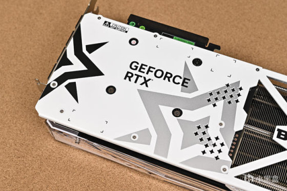 显卡背侧这次和此前发布的 RTX 4080 星曜 OC 同样统一为白色设计。全白设计,一体压铸的金属背板,镂空设计保障散热性能,白色喷涂搭配丝