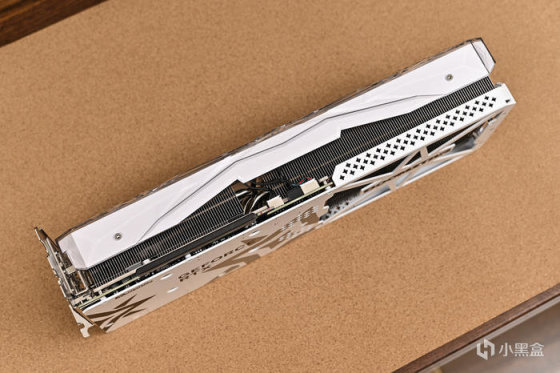 显卡尾部可以看到显卡的 7 根镀镍复合热管(2*Φ8mm+5*Φ6mm )。