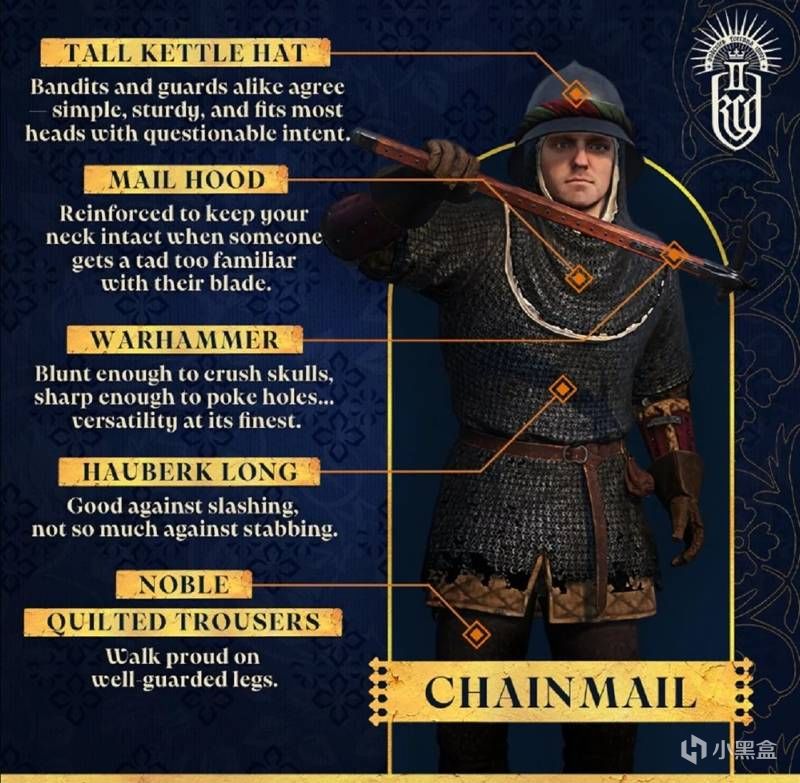 遊戲體量上早前就有多方面官宣過。《天國拯救2》相比初代規模要大很多,地圖大小擴大了一倍,僅過場動畫就超過了5個小時。早前老基德也針對該作報道過多次內容上的提升。此次我們來聊一些新的。官方前不久公佈了盔甲介紹,介紹了鍊甲、鑲甲和板甲三種