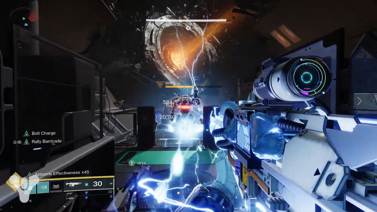 虽然玩家可以从任何来源——星象、碎片、武器Perk等——持有1或多层电球充能,使用任何武器造成伤害都可以提升电球充能层数。每次获得充能时,玩家会获得一部分近战技能能量。达到10层时,玩家的电球充能完成,并且任何技能伤害——电或者其他技能——会召唤一道强力的落雷,造成和烈日点燃差不多的伤害,AOE比点燃略小。和点燃不同,棒鸡专门平衡了电球充能,使其有更稳定和可预测/可控的利用率