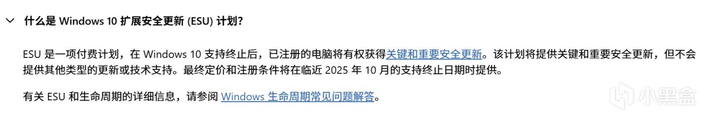 當然,如果用戶繼續使用 Windows 10 因爲缺乏安全更新因此存在安全方面的缺陷,在安全性方面來講的話,用戶如果願意的話可以訂購 30 美元 / 年的 ESU 付費安全擴展計劃,這種情況下依舊可以繼續接收到安全更新。