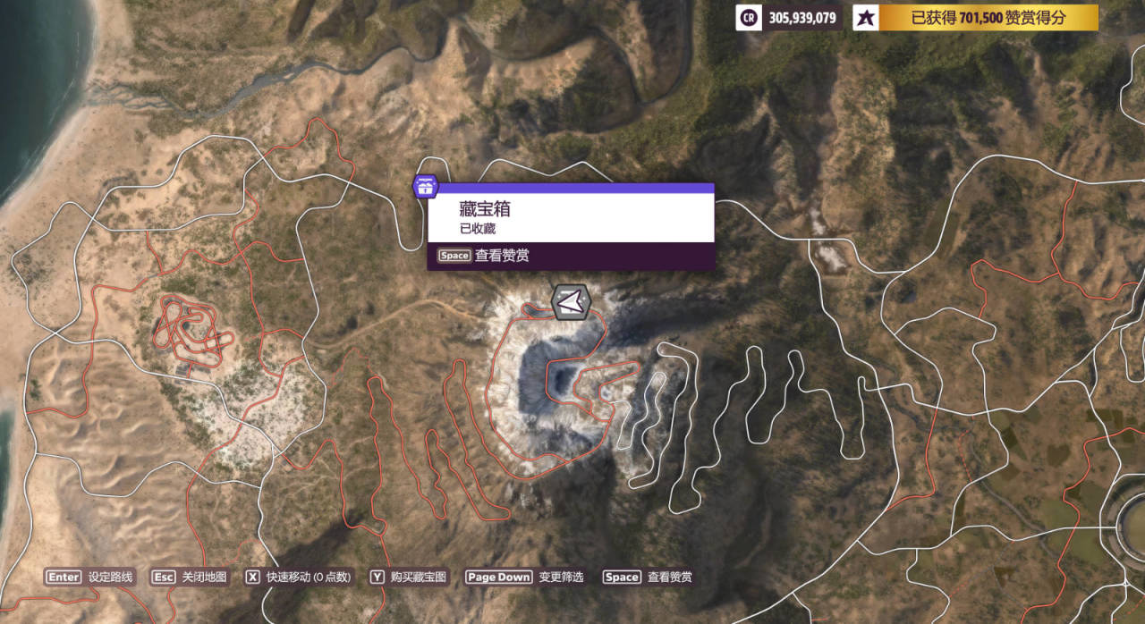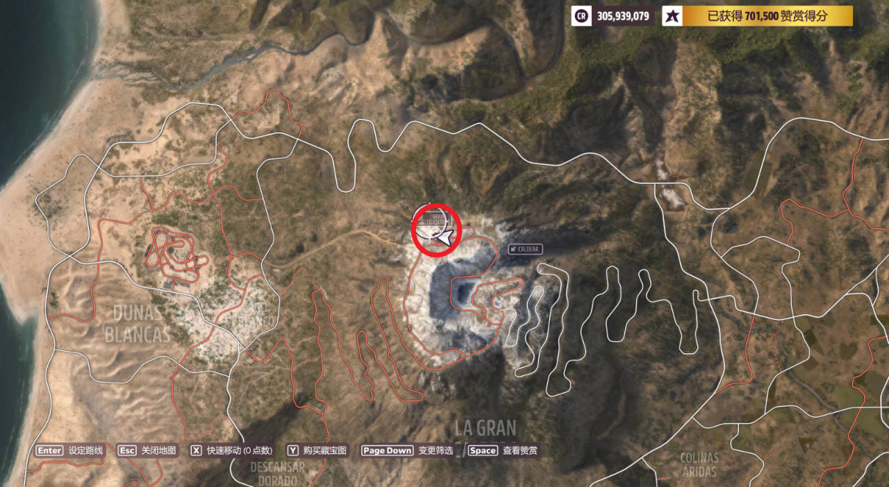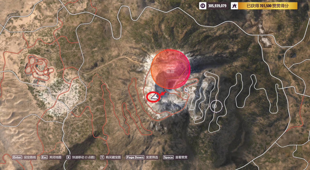 駕駛2018款EXOMOTIVE EXOCET OFF-ROAD抵達墨西哥最高點,即可觸發寶箱範圍,寶箱位置如圖,完成獎勵爲300馬拉松點數