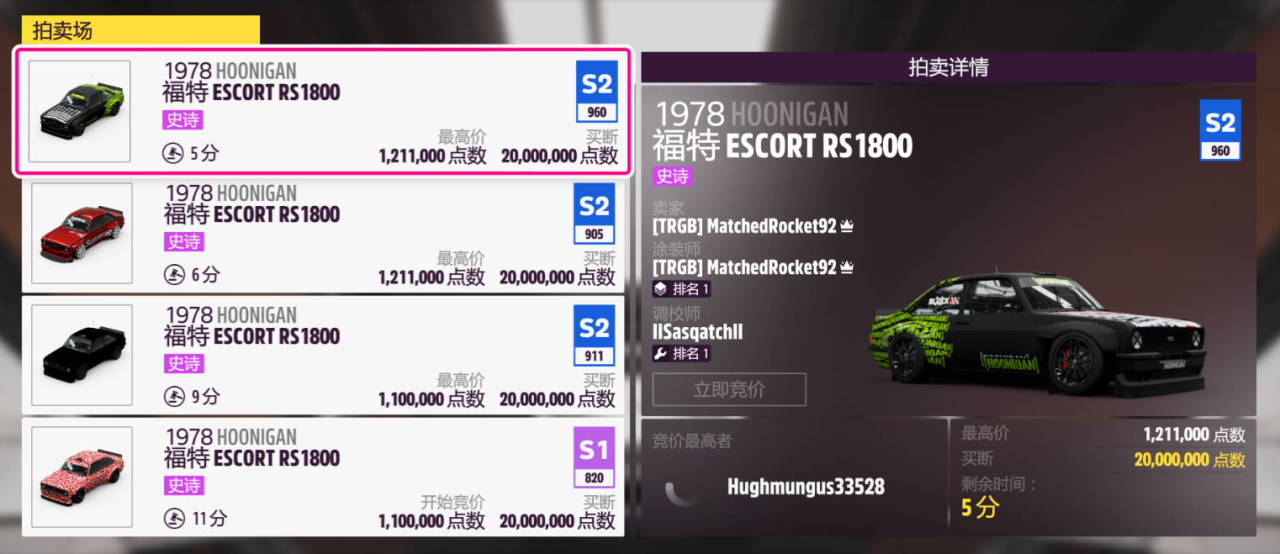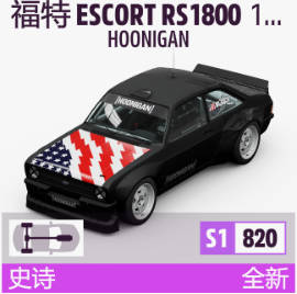 指定車輛爲1978款HOONIGAN 福特 ESCORT RS1800(車展、嘉年華任務列表第一個藍圖賽事獎勵車)