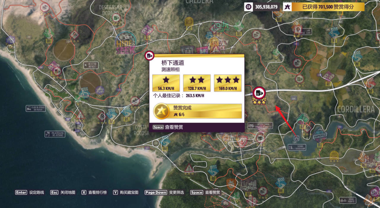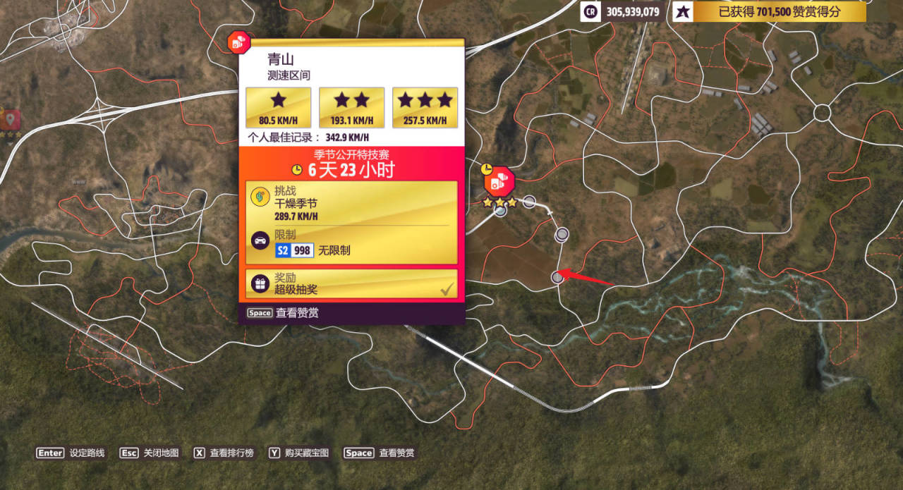 測速區間:青山,完成獎勵爲超級抽獎。(建議從箭頭所指處出發,過彎剎車輕點)