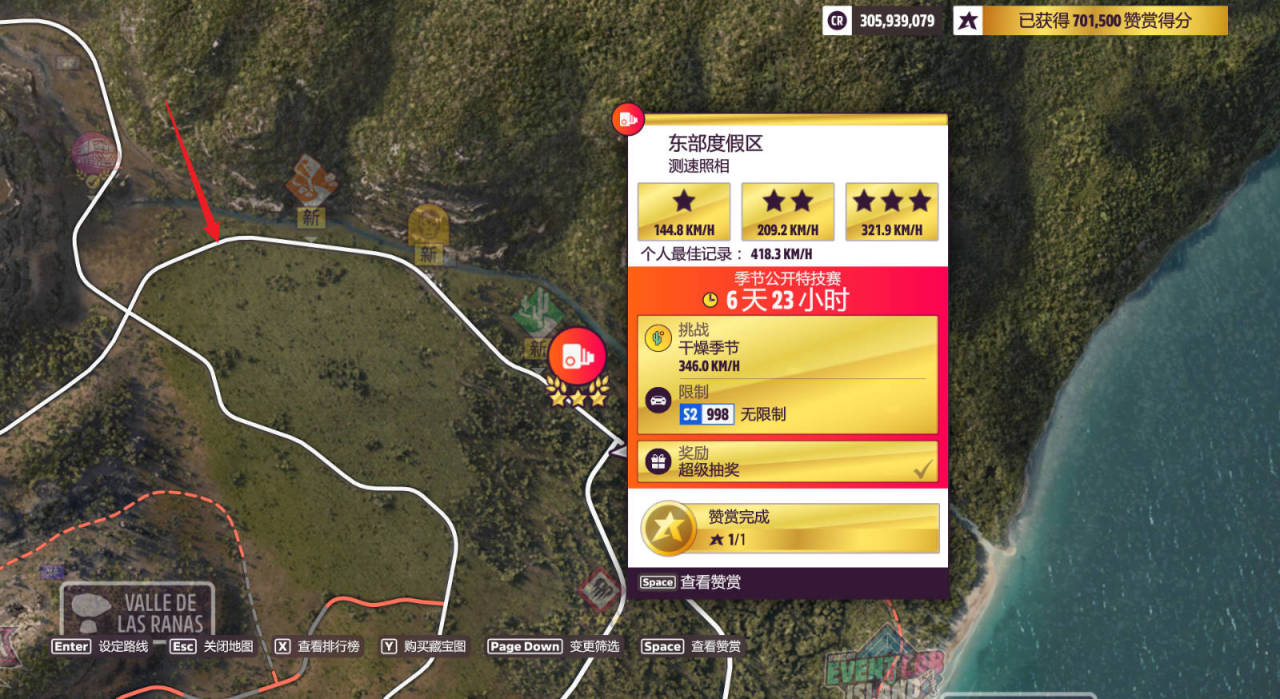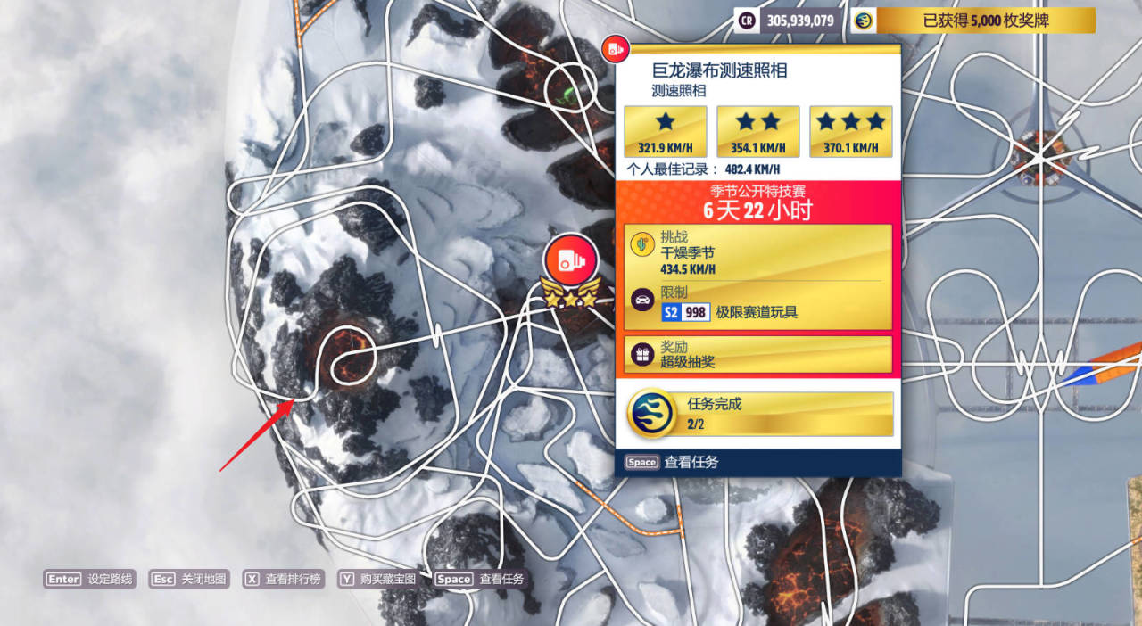 測速照相:東部度假區,完成獎勵爲超級抽獎。(建議從箭頭所指處出發,注意彎道鬆油門不要剎車)